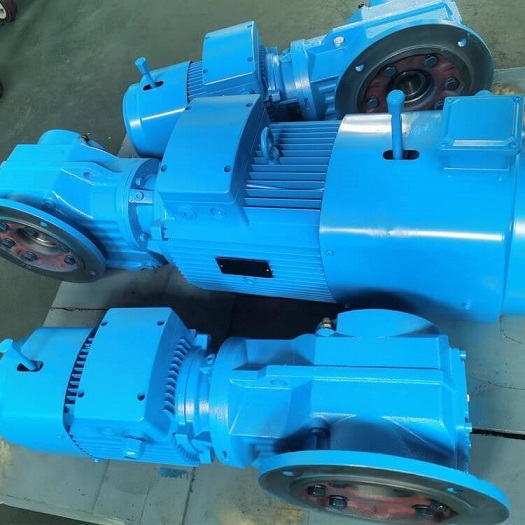 通常來(lái)說(shuō)我們減速機(jī)配的制動(dòng)裝置叫失電盤(pán)式制動(dòng)。簡(jiǎn)單來(lái)說(shuō)就是失電即可制動(dòng),停止運(yùn)行,比較的安全可靠。但是有些情況下斷電即停止運(yùn)行的話,設(shè)備的工作狀態(tài)還需運(yùn)行。例如車(chē)輪運(yùn)行機(jī)構(gòu),物體的升降機(jī)構(gòu)等都要應(yīng)用到制動(dòng)減速機(jī)。斷電了所有驅(qū)動(dòng)裝置就停止了,無(wú)法運(yùn)行。但在一些工況下,斷電了還需要運(yùn)行,比如檢修,車(chē)輛的回位等,必須要加手動(dòng)釋放裝置,在斷電情況下,手動(dòng)斷開(kāi)剎車(chē),讓驅(qū)動(dòng)系統(tǒng)簡(jiǎn)單運(yùn)行,滿足臨時(shí)需要。這個(gè)客戶訂購(gòu)的實(shí)際邁傳K系列直角減速機(jī)加手動(dòng)釋放裝置,如下圖所示: