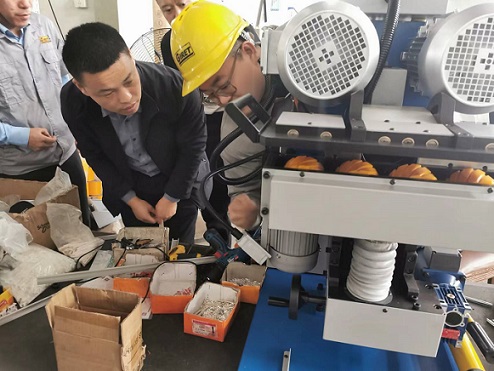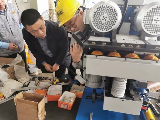 合作的設(shè)備廠家主要是生產(chǎn)坡口機設(shè)備的。坡口機是屬于鋼板坡口機的一種,使用于焊接前金屬板材的去毛刺,主要是利用滾銑原理,對鋼板邊緣按所需角度進行銑切,以得到焊接所需的坡口。適用于鋼材、鑄鐵、硬質(zhì)塑料、有色金屬等材料。上面所用的小型直角軸減速電機為我司提供。在使用中比較的方便,這次由于設(shè)備的需求提出想用雙軸輸出方式,這不,技術(shù)周工在現(xiàn)場演示了小型直角減速電機雙軸輸出的方式在設(shè)備上怎樣應(yīng)用。并且給現(xiàn)場技術(shù)人員解答了他們的一些關(guān)于減速機的疑問。設(shè)備廠家對我們技術(shù)以及售后服務(wù)的熱情態(tài)度表示非常的認(rèn)可。
