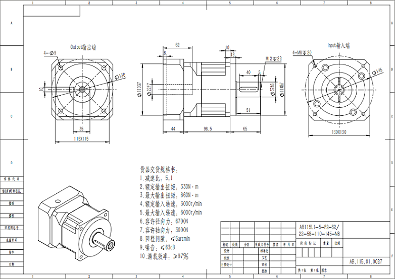 邁傳行星減速機(jī)AB115L1-5-P2-S2-22-58-110-145-M8安裝尺寸圖